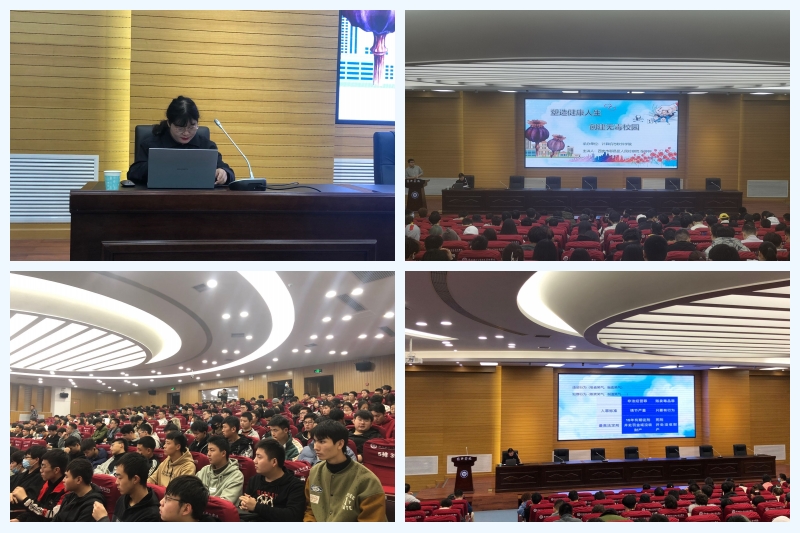 2020年11月17日下午4:30,计算机与软件学院邀请鄠邑区人民检察院第一检察部干警张婷婷在教学四楼报告厅举办“塑造健康人生,创建无毒校园”主题讲座。党总支书记王勃、分院全体专兼职辅导员以及近500名学生参加了此次主题讲座。活动由学生科科长周睿主持。