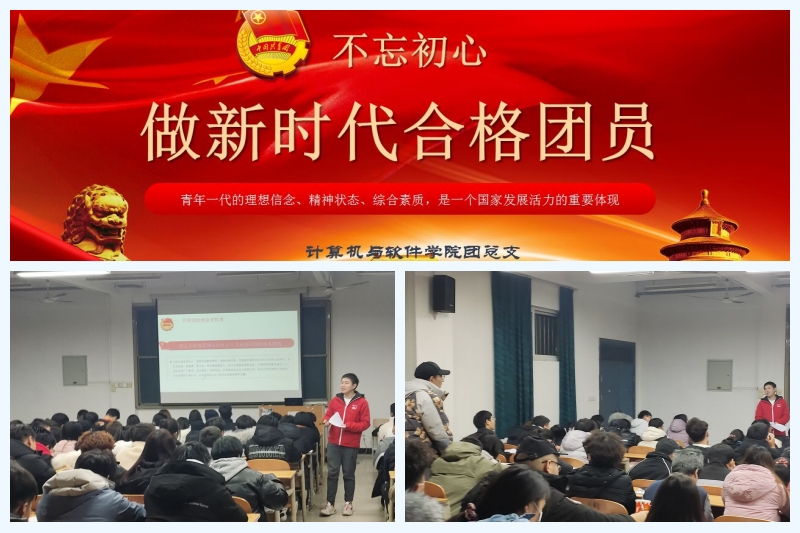 12月16日晚,计算机与软件学院团总支开展“不忘初心 做新时代合格团员”专题团课,各团支部书记、组织委员等百余名团员代表参加团课学习,专题团课由团总支书记向仲攀主讲。
