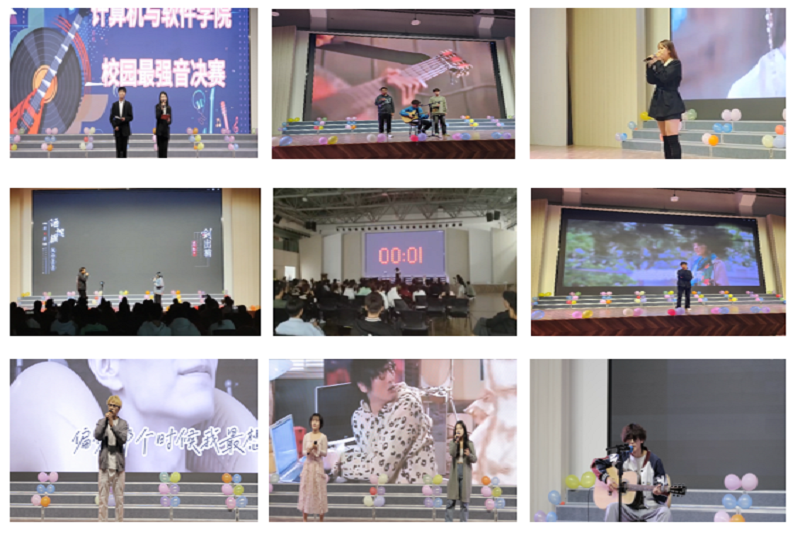 经过两周时间初赛、复赛的层层选拔,13组选手成功晋级总决赛。节目形式包括独唱、小合唱,乐队表演等,上届最强音冠军李彦同学进行了热场表演。比赛过程中,选手们倾情演绎自己的歌曲,他们用歌声诠释活力,以青春演绎精彩,用实力征服观众。台下的观众热情洋溢,齐声喝彩,整个比赛过程气氛热烈、激情挥洒,掌声、喝彩声经久不息。同学们为自己喜爱的选手呐喊助阵,为每一次美妙的歌声振臂高呼,尽情享受着音乐带来的快乐。