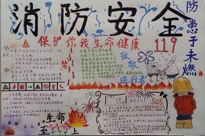 同学们将自己强烈的消防安全意识付诸于画笔,生动形象的图文漫画,成为宣传消防安全知识的亮丽风景。本次消防安全手抄报比赛活动,让全体学生对校园消防安全知识有了更深入地了解,使“关注消防,关爱生命”观念深入人心。