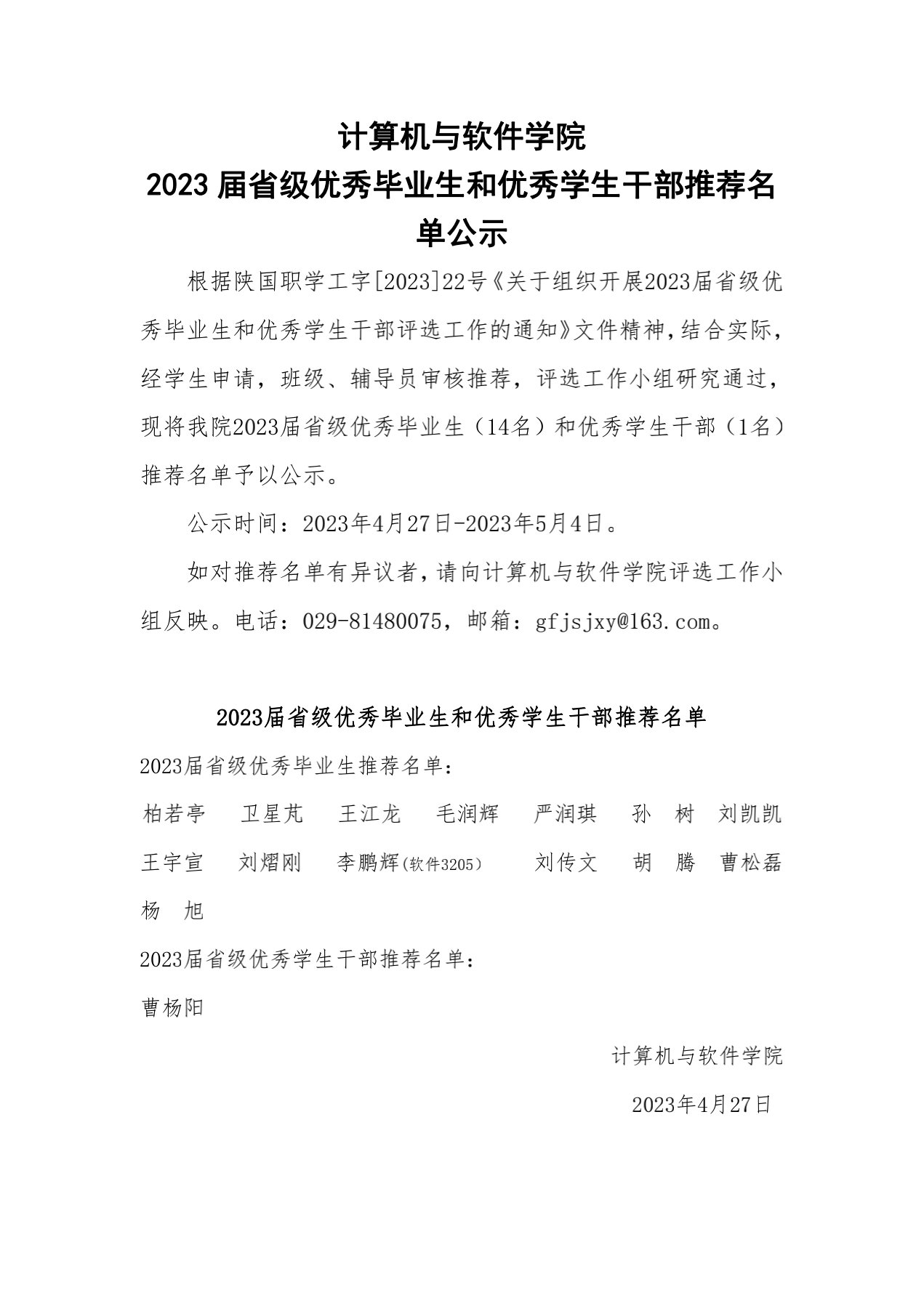 上一条:计算机与软件学院2023届校级优秀毕业生推荐名单公示