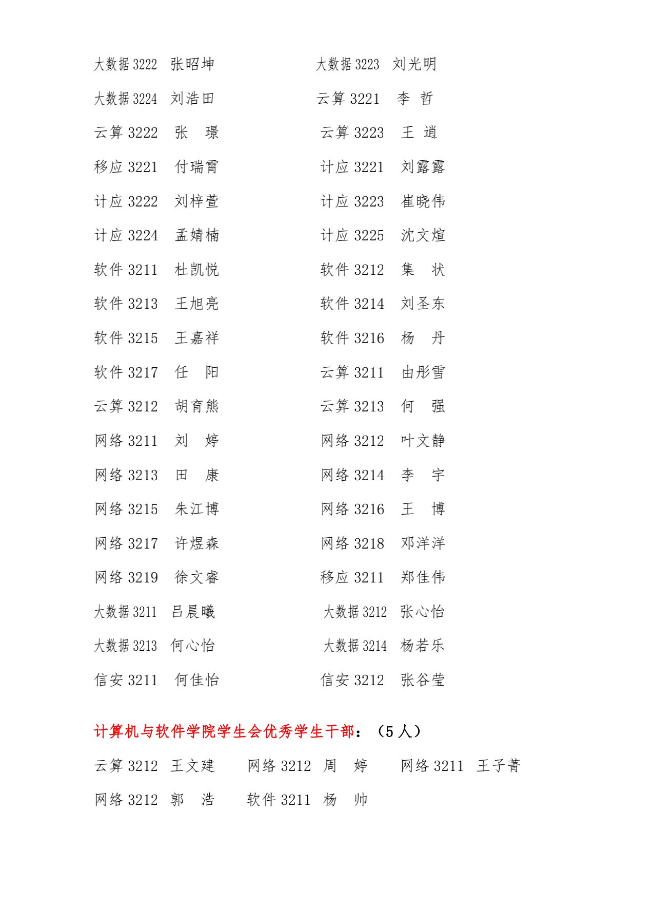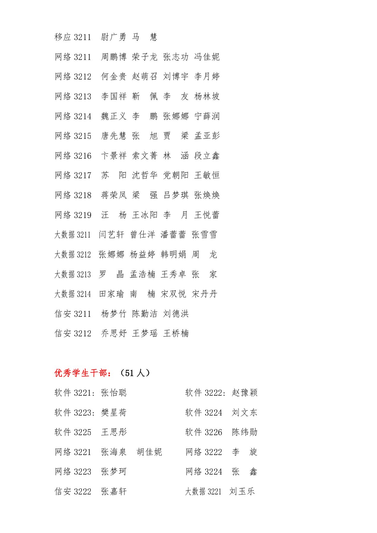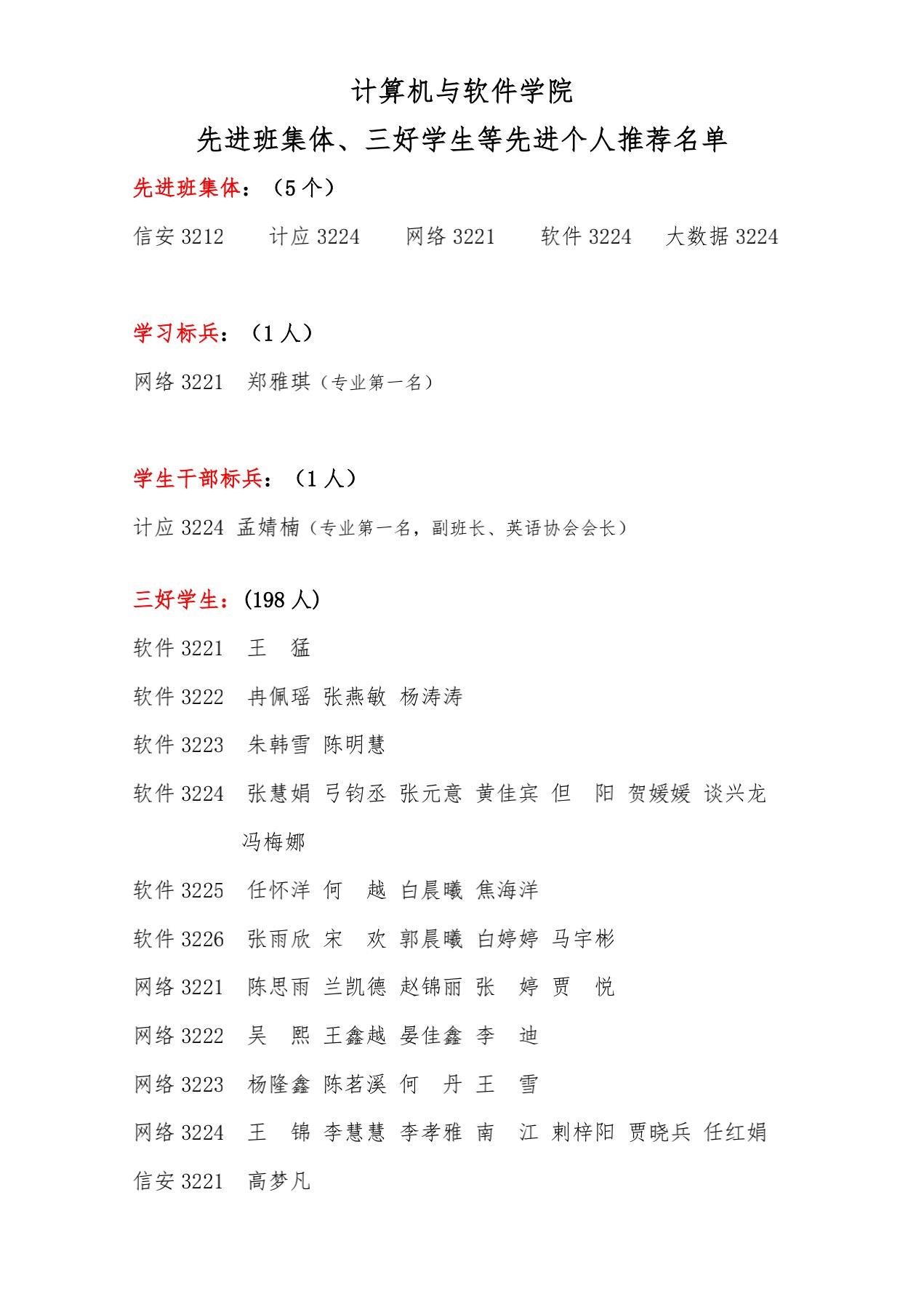 依据陕国职学工字〔2023〕37号《关于开展“学习标兵”、“学生干部标兵”、“三好学生”、“优秀学生干部”和“先进班集体”评选工作的通知》文件要求,经过学生申请,结合班级推荐及民主评议意见,经研究决定,现将计算机与软件学院2022-2023学年先进班集体、学习标兵、学生干部标兵、三好学生、优秀学生干部推荐名单予以公示。