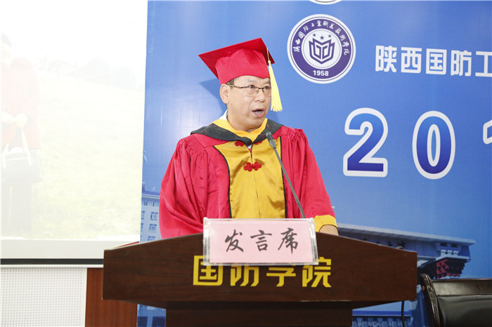 我校党委书记张卫平代表全校师生员工,向圆满完成本科学业的毕业生表示热烈祝贺!他说,今天是国防学院历史上重要的一天,作为第一批本科生,你们的毕业代表了学校发展的又一里程碑,你们是学校的荣誉和骄傲!他对毕业生提出了几点期望:一是把人做好,诚信友善,勇于担当;二是把事干好,大处着眼,小处入手,锲而不舍;三是把梦圆好,大胆有梦、努力追梦。最后他希望同学们记住,母校永远关注你们,祝福你们,欢迎大家常回家看看!