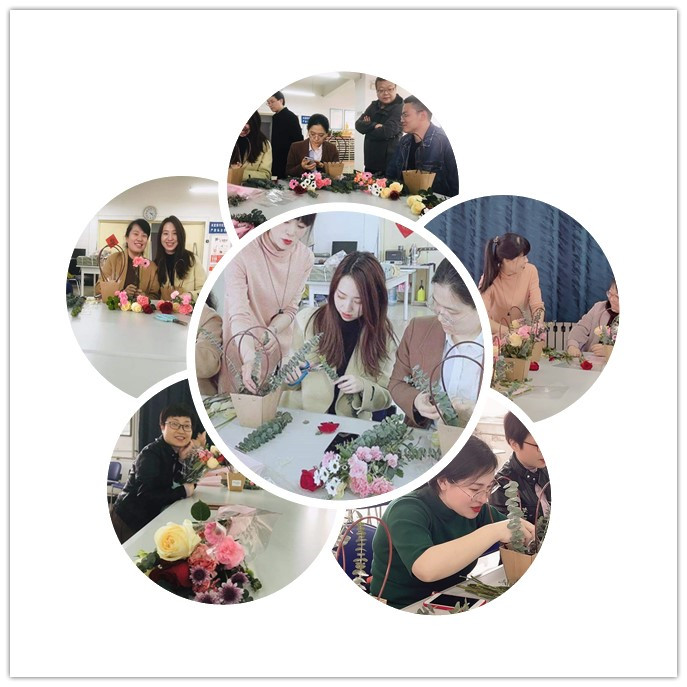 首先支部书记张俊勇向各位女职工表示了节日的祝贺,工会主席石小艳讲解了举办本次活动的意义。接着花艺老师为大家详细讲解了花的品种、色彩搭配和插花技巧等基础知识。随后,在芬芳四溢和欢声笑语的氛围中,大家开始构思造型、认真挑选、分类搭配,将五彩缤纷的花朵精心剪裁、混搭、点缀成束,探讨插花要领和技艺。经过大家巧妙的创意、组合,勾勒出一个个不同样式却又赏心悦目的花艺作品。