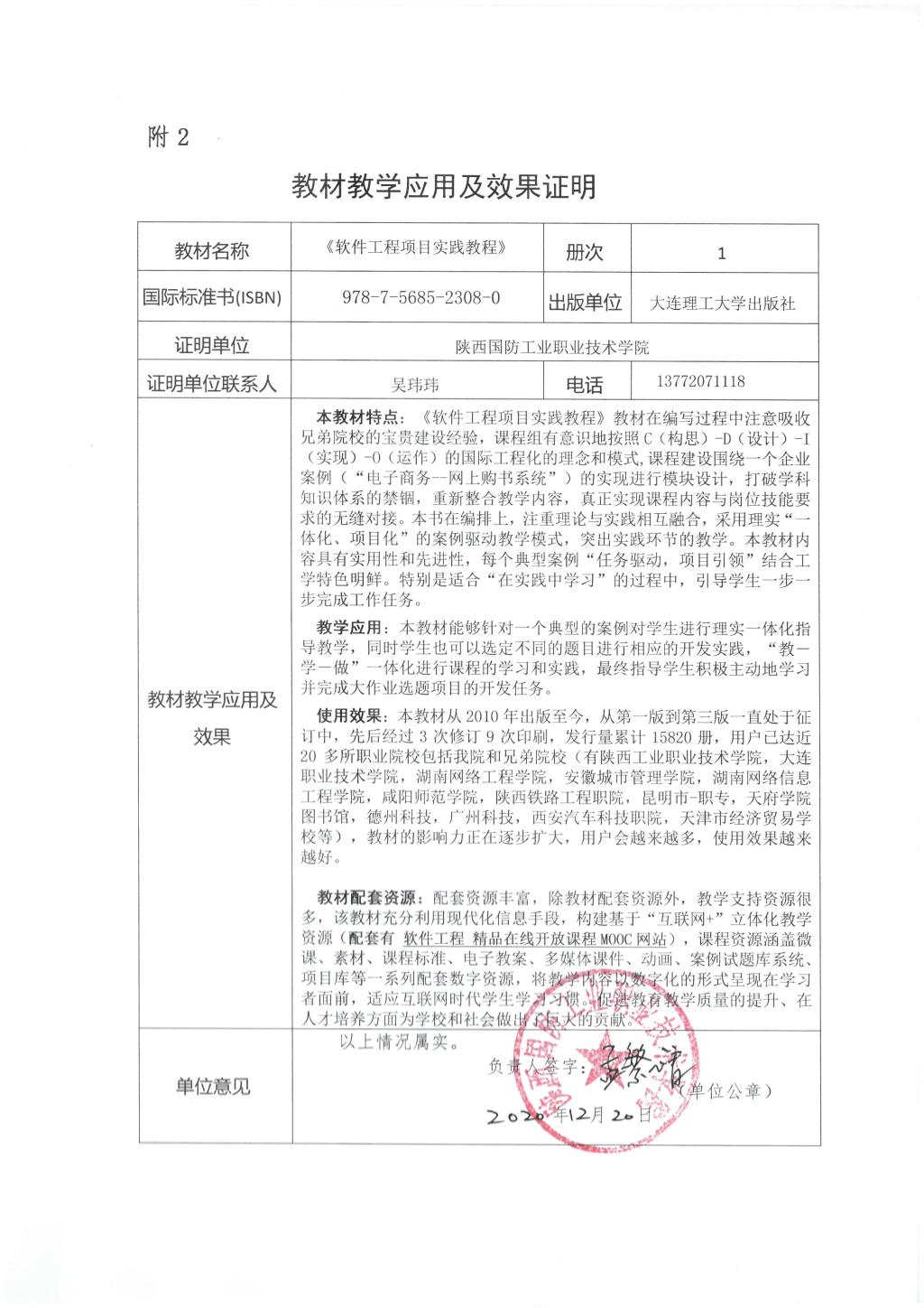 教材教学应用及效果证明