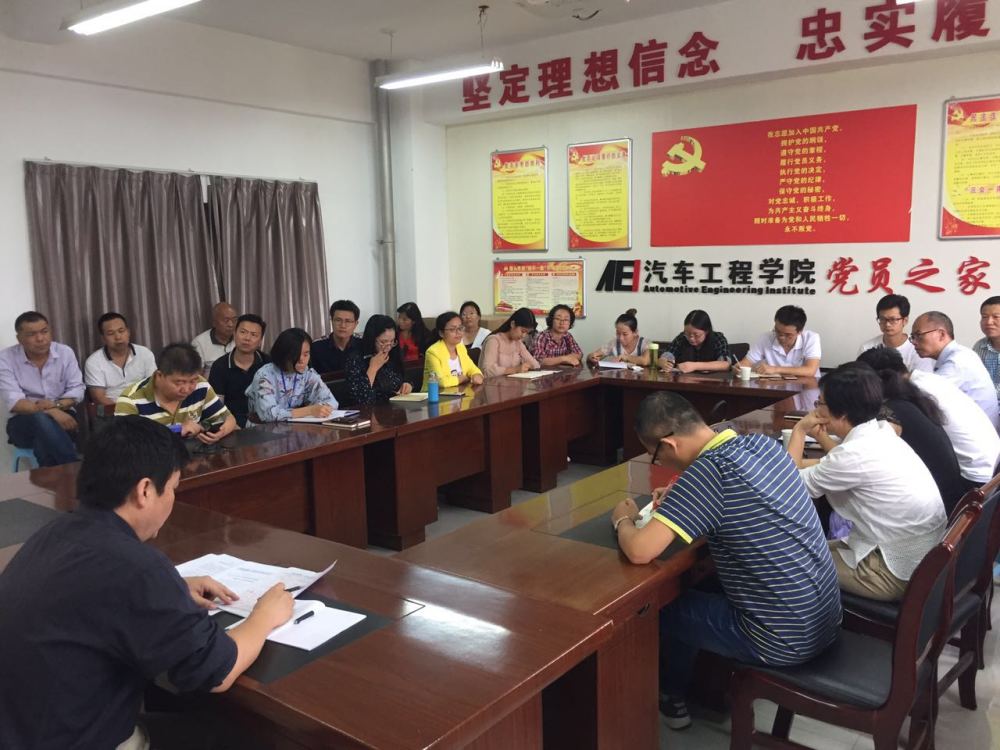 9月19日下午,汽车工程学院党总支组织全体教师党员开展“两学一做”专题党课,题目为《发挥党员带头作用,做好“四化”课程改革》,会议由汽车工程学院党总支书记史朝辉主持。
