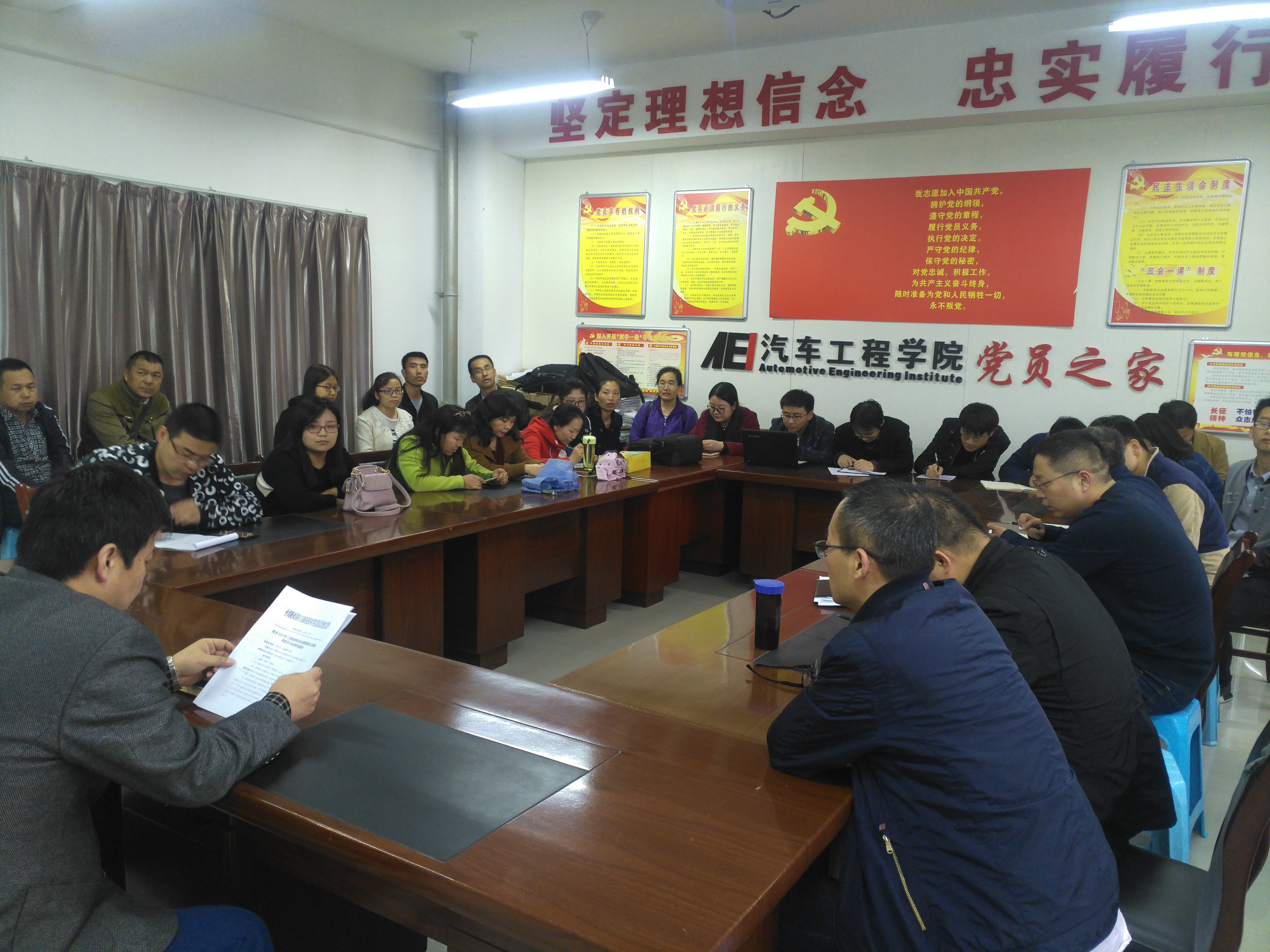 4月12日,汽车学院组织全体教职工积极开展组织活动暨政治理论学习,围绕学习全国“两会”精神及学习中共十九届三中全会精神等内容。