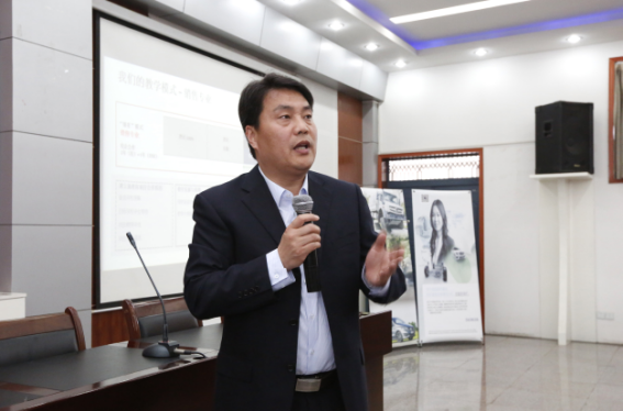宣讲会上,汽车工程学院院长张鑫代表学院对乐京生先生、姚可先生及经销商们的到来表示欢迎,并介绍了学院办学历史、办学特色以及本次宣讲的重要意义。随后,乐京生经理介绍了戴姆勒汽车发展史、奔驰汽车的内涵与品质、戴姆勒铸星教育项目职业发展规划和学生选拔方式。