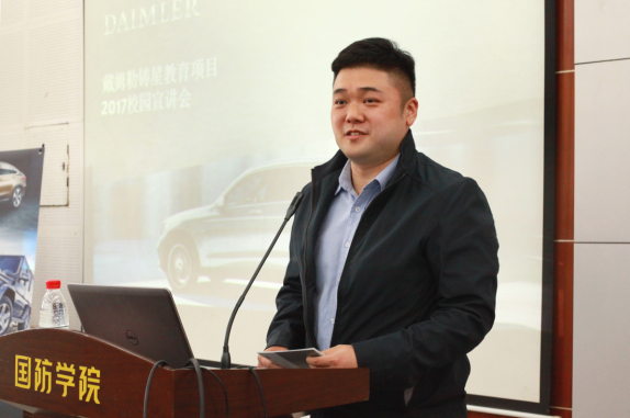 郑凯伦经理介绍了西安地区奔驰4s店的布局和发展、人才需求以及为戴姆勒铸星教育项目学生提供的岗位。