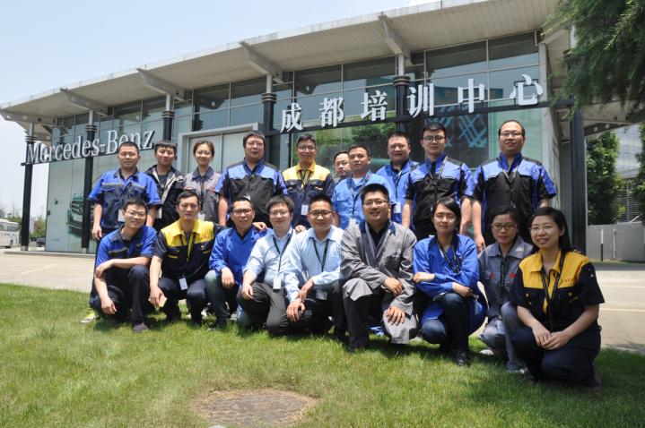在培训的前三周,培训专家以风趣幽默的方式讲解了戴姆勒公司的历史和品牌、梅赛德斯—奔驰车型以及新产品特征和功能,系统地讲授了保修基础、发动机、变速箱、悬挂系统、制动系统、电子基础、车载供电和网络、高压电、中控与空调、WIS/ASRA、Xentry诊断仪以及电路图的运用等理论知识;在最后一周,进行了保养实操项目练习以及结业考试。