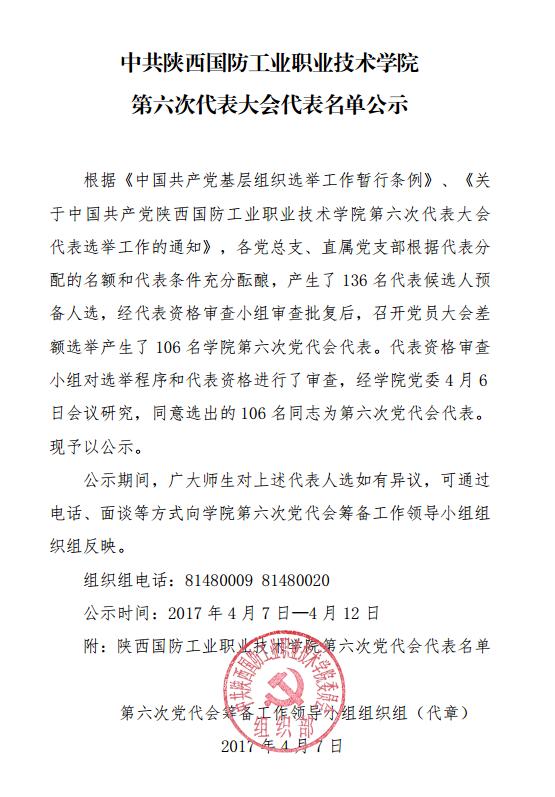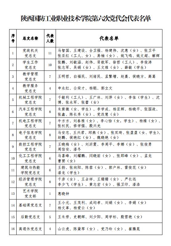 机电工程学院党员代表公示情况: