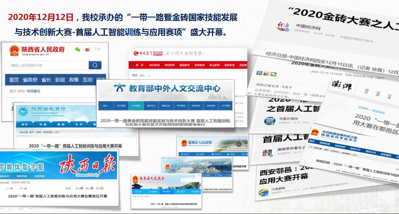 成功举办陕西省高职院校职业技能大赛“物联网技术应用”赛项和2020一带一路暨金砖国家技能大赛人工智能赛项的国内赛和国际邀请赛,学院整体实力、影响力和综合排名位居全国前列。