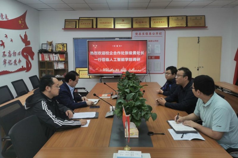 6月2日,学校校企合作处张处长俊勇一行两人来人工智能学院就校企合作和技能竞赛等工作开展调研,人工智能学院院长姜鑫、教学科长程瑞鹏、青年教师李研伟等参加了本次调研工作。