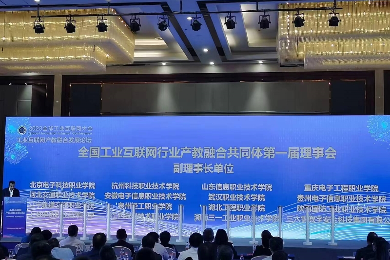 2023全球工业互联网大会产教融合发展论坛以“深化产教融合,助力新型工业化”为主题,邀请工业互联网领域专家学者、高等院校、职业院校和行业企业代表,教育部职成司院校发展处主任弋凡、国家发改委宏观经济杂志社社长韦大乐、中国工业互联网研究院副院长罗俊章等专家学者就工业互联网产教融合和人才培养进行深入交流。孟繁增副校长代表我校做题为《深化高职教育供给侧改革 增强工联网人才培养适应性》的主题报告。