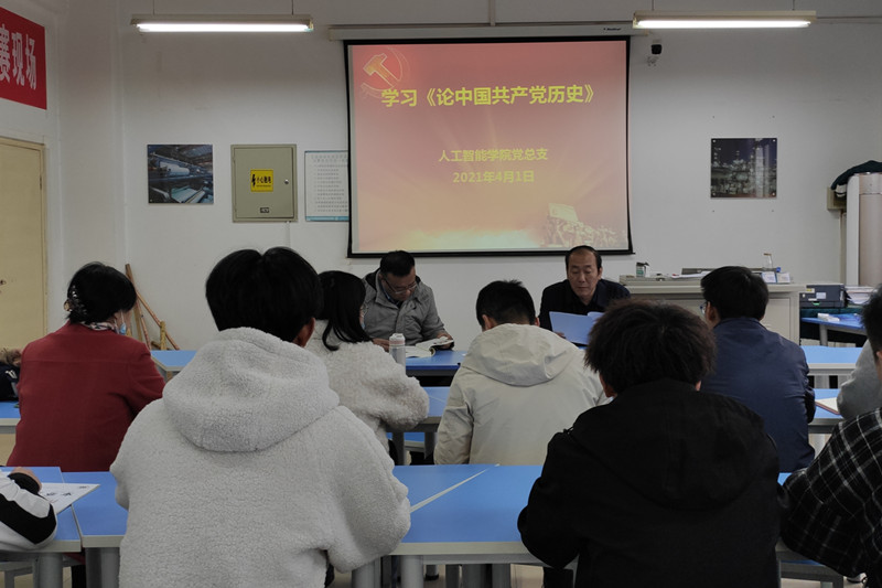 根据陕国职党发〔2021〕6号《关于印发《开展党史学习教育实施方案》的通知》。人工智能学院于04月01日下午16:30在8-208开展全体党员第一次党史学习,会议由人工智能学院党总支书记张双琦老师主持,人工智能学院院长姜鑫同志同全体教工党员、学生党员出席了本次会议。