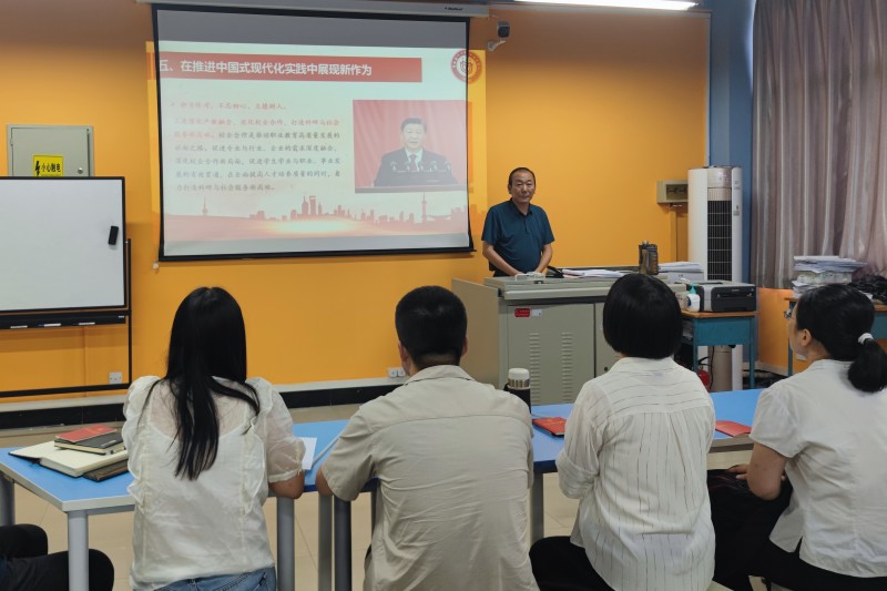 为庆祝中国共产党成立102周年,全面学习贯彻党的二十大精神,深入开展学习贯彻习近平新时代中国特色社会主义思想主题教育。根据陕国职党发〔2023〕18号《关于开展庆祝中国共产党成立102周年系列活动的通知》要求,6月15日下午,人工智能学院党总支书记张双琦以“以中国式现代化全面推进中华民族伟大复兴”为题讲授专题党课,人工智能学院院长姜鑫,全体教工党员以及学生党员参加了本次学习。