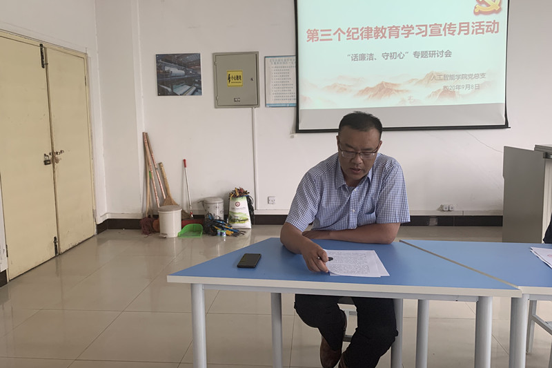 为深入贯彻落实习近平总书记来陕考察重要讲话精神,扎实落实省委和校纪委关于赵正永严重违纪违法案以案促改工作有关要求,人工智能学院党总支于2020年9月8日下午5:00,在8-208室召开“话廉洁、守初心”专题研讨会。会议由人工智能学院党总支书记张双琦主持,全体教工党员参加了本次研讨会。
