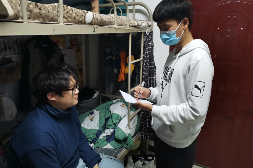 期间,党员学生通过座谈、交流和参与各宿舍活动等多种方式,主动与所联系宿舍同学谈心,摸排同学们在疫情防控、防寒保暖、生活学习等方面遇到的困惑和困难。对于他们反映的问题和合理诉求进行分类汇总并及时上报,通过细致入微、暖心周到的服务行动,打造“贴心”服务格局,逐步形成了党建进公寓的工作模式,以学生公寓为立足点,发挥思想政治引领作用,以党员联系宿舍为抓手,充分调动学生的“自我教育、自我管理、自我服务”意识。为封校期间同学们的学习生活增添保障、精神增添安心。
