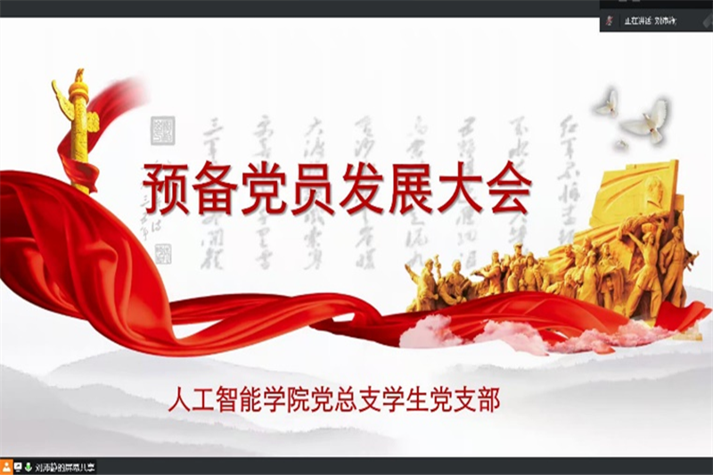 为响应党的号召,培养优秀党员,2022年12月2日晚上19:30,人工智能学院党总支学生党支部召开预备党员发展大会,议题是讨论接收郭明落、来顺鹏等22名同志为预备党员的问题。本次会议由学生党支部书记刘沛静主持,该支部全体党员同志、预备党员及发展对象参与此次议会。