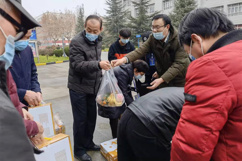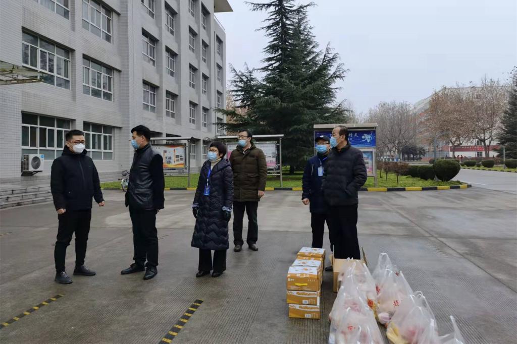 为了切实做好疫情防控工作,保障装修员工的身体健康,1月8日下午15:00,人工智能学院党总支书记张双琦、院长姜鑫、图书馆馆长闫晓前、保卫处处长徐哲以及在校教师代表到教三楼对因疫情滞留在学校的陕西恒业建设集团有限公司和立豪建设集团有限公司的人员进行了慰问。给他们送去疫情防控用的消毒液、口罩、面包、牛奶、水果等慰问品。