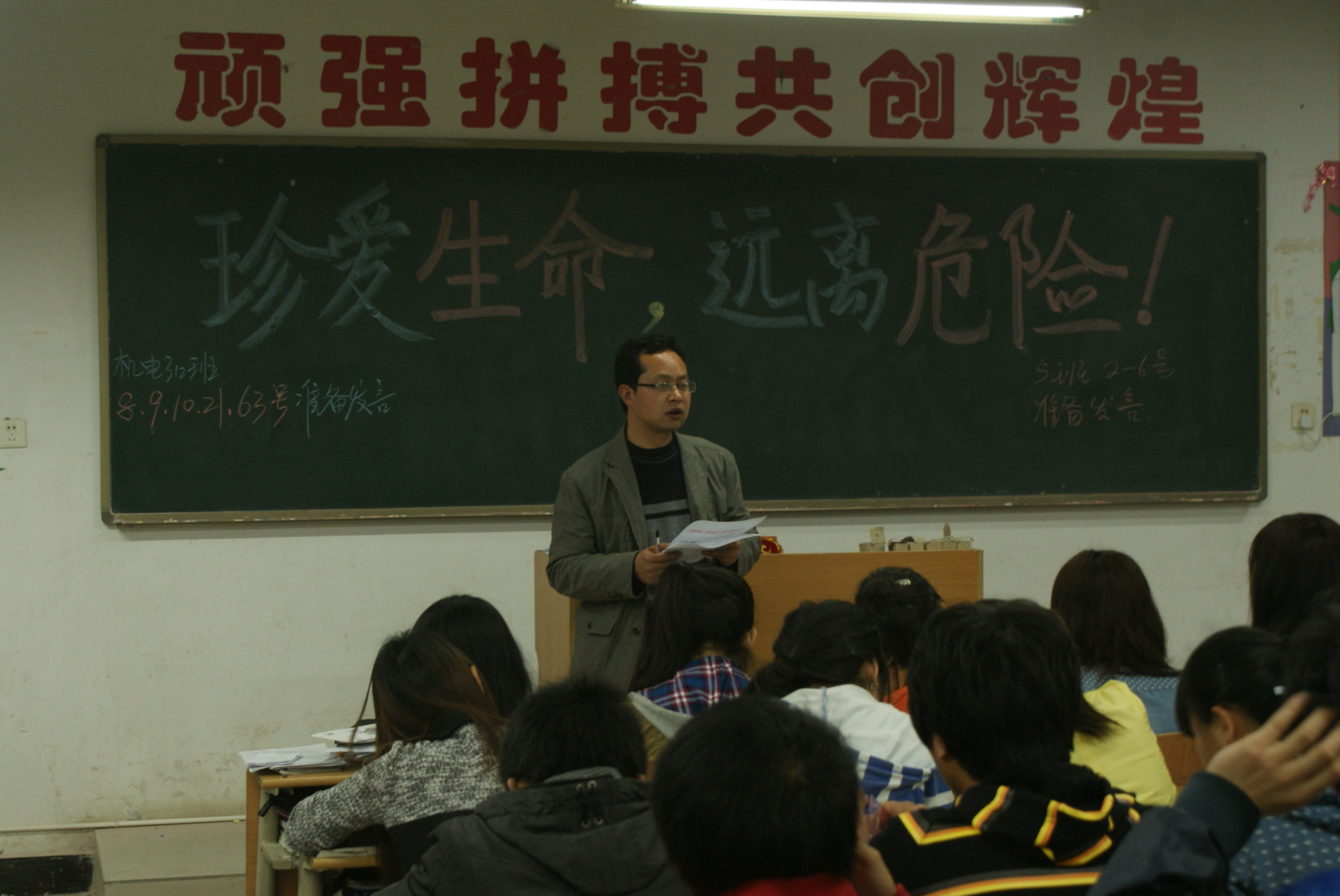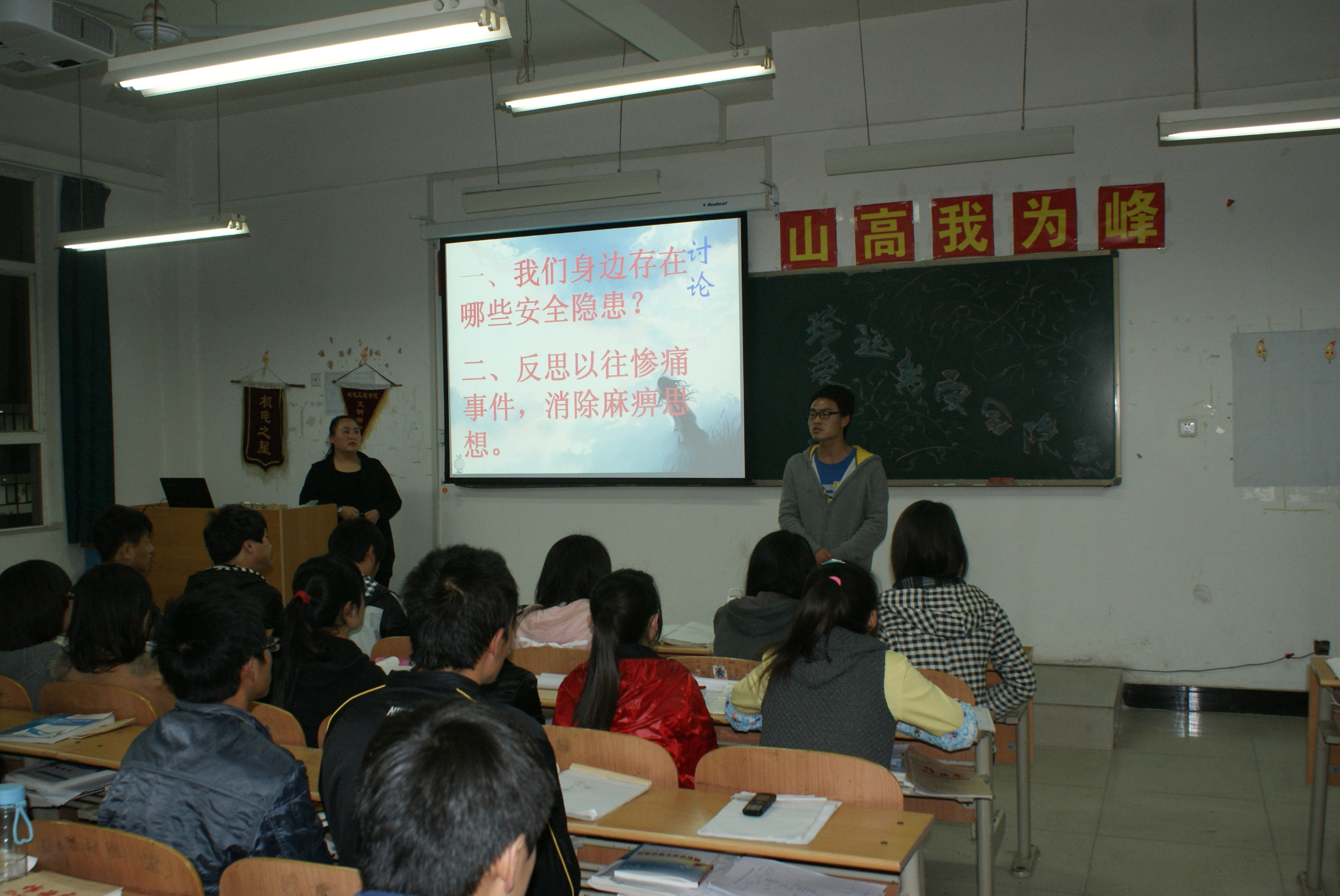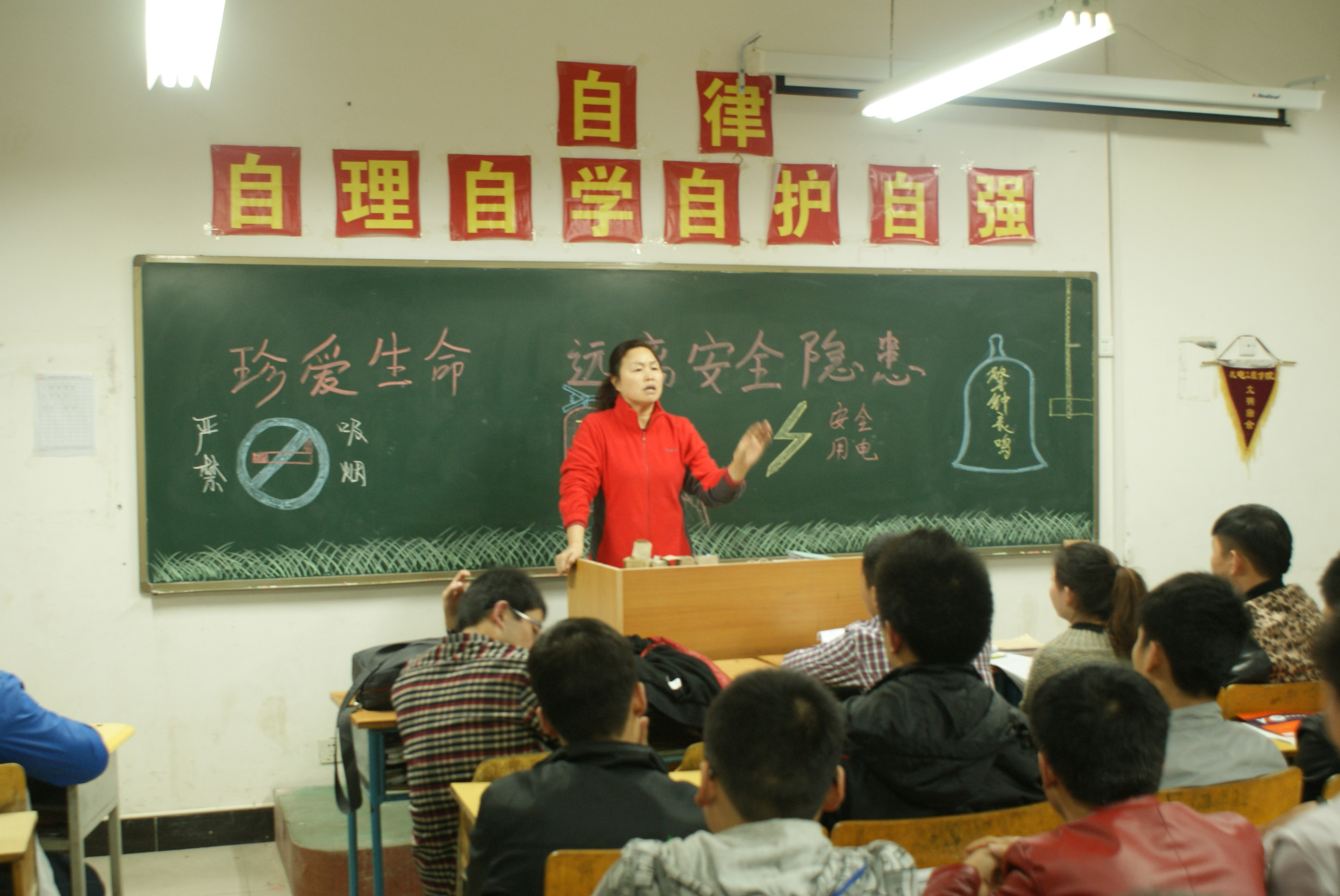 2013年3月17日晚,机电工程学院各班级开展了以“关爱生命 远离安全隐患”主题班日活动。分院接到学保字(2013)2号文件后,在辅导员例会上精心部署了此次班会。分院要求各班提前在黑板上布置班会主题,并安排部分班级试点采用多媒体手段开展此次班会。在周日晚的班会过程中,每个班级都能够提前布置黑板,活动过程井然有序,有的班级展开了主题大讨论,有的班同学在讲身边的安全故事,有的班级还积极采用PPT、视频等多媒体的形式向同学们开展防火、防盗、防诈骗常识等安全教育,班会过程丰富多彩,形式多样。