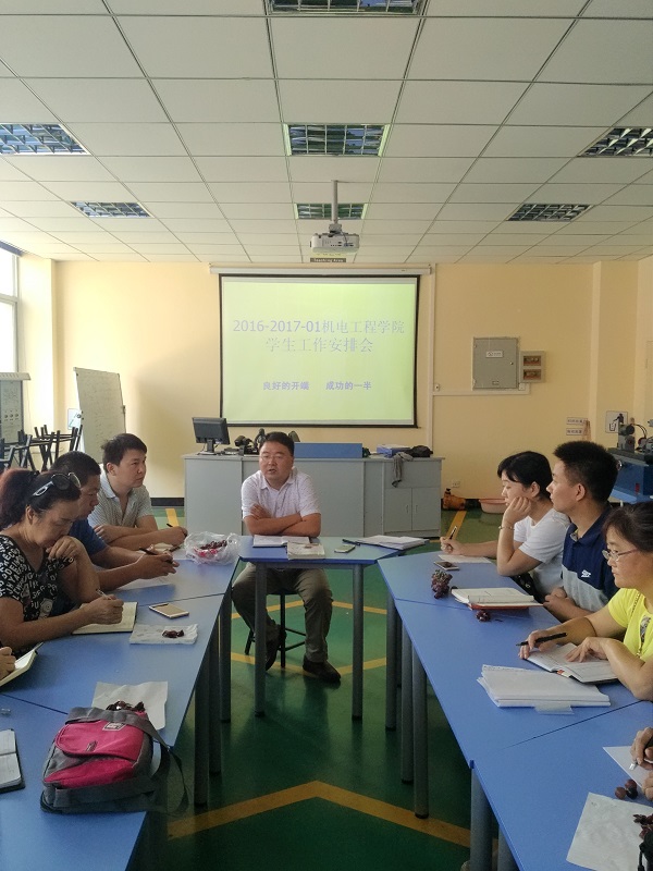 良好的开端是成功的一半,机电学院于2016年8月27日召开了本学期第一次辅导员大会,机电学院党总支书记殷兴光教授、机电学院学生科干事以及全体辅导员参加了本次大会。大会由学生科长牛方方主持。