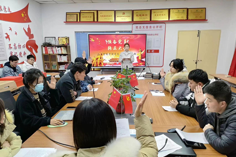 2023年2月22日下午16:30,人工智能学院党总支学生党支部在8-209召开预备党员转正大会。会议讨论关于常润等11名同志预备期满申请转为中国共产党正式党员的问题。出席本次会议的有人工智能学院党总支学生党支部书记刘沛静、支部委员贾媛媛、赵欣、全体预备党员培养联系人以及全体学生党员,本次会议由刘沛静同志支持。