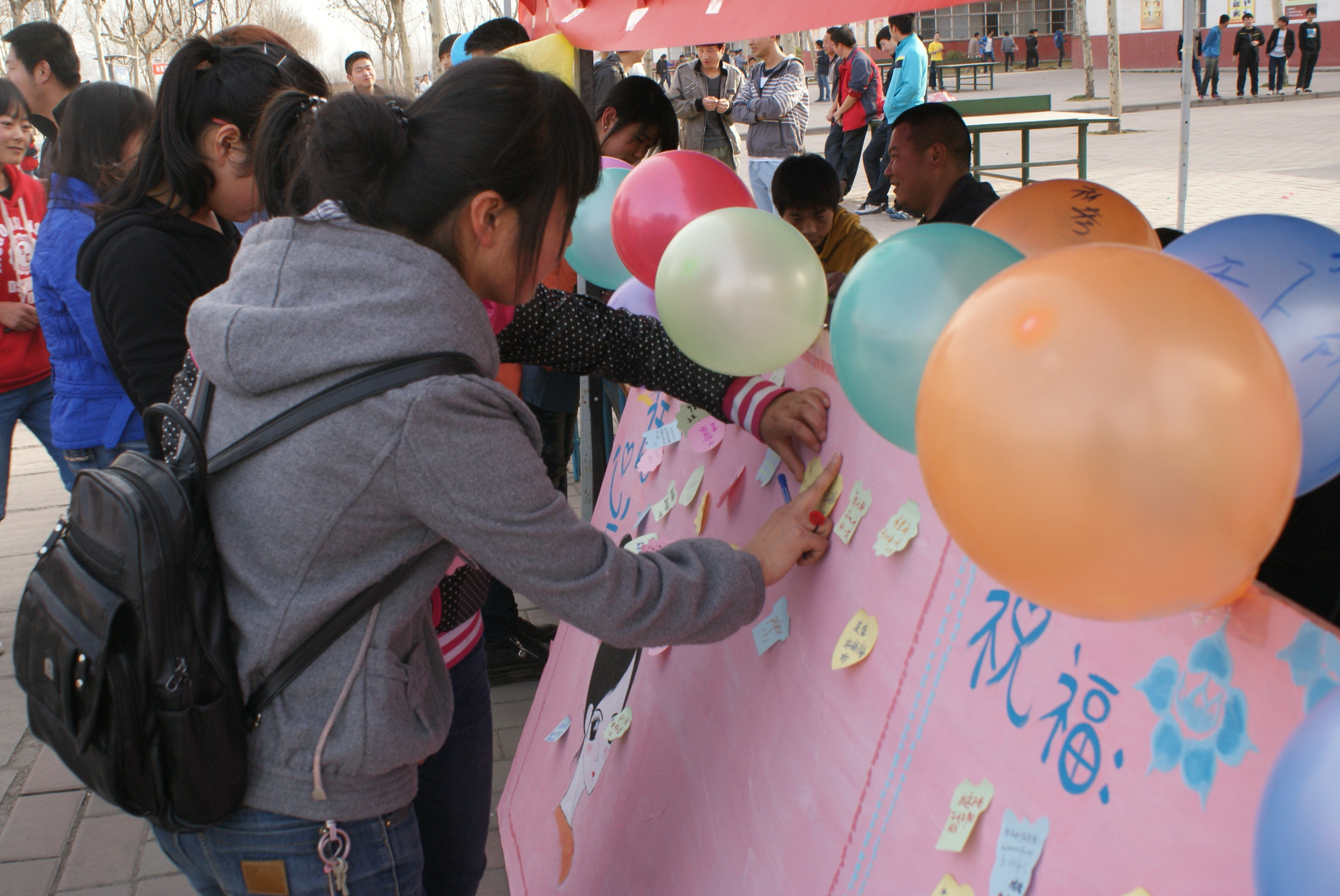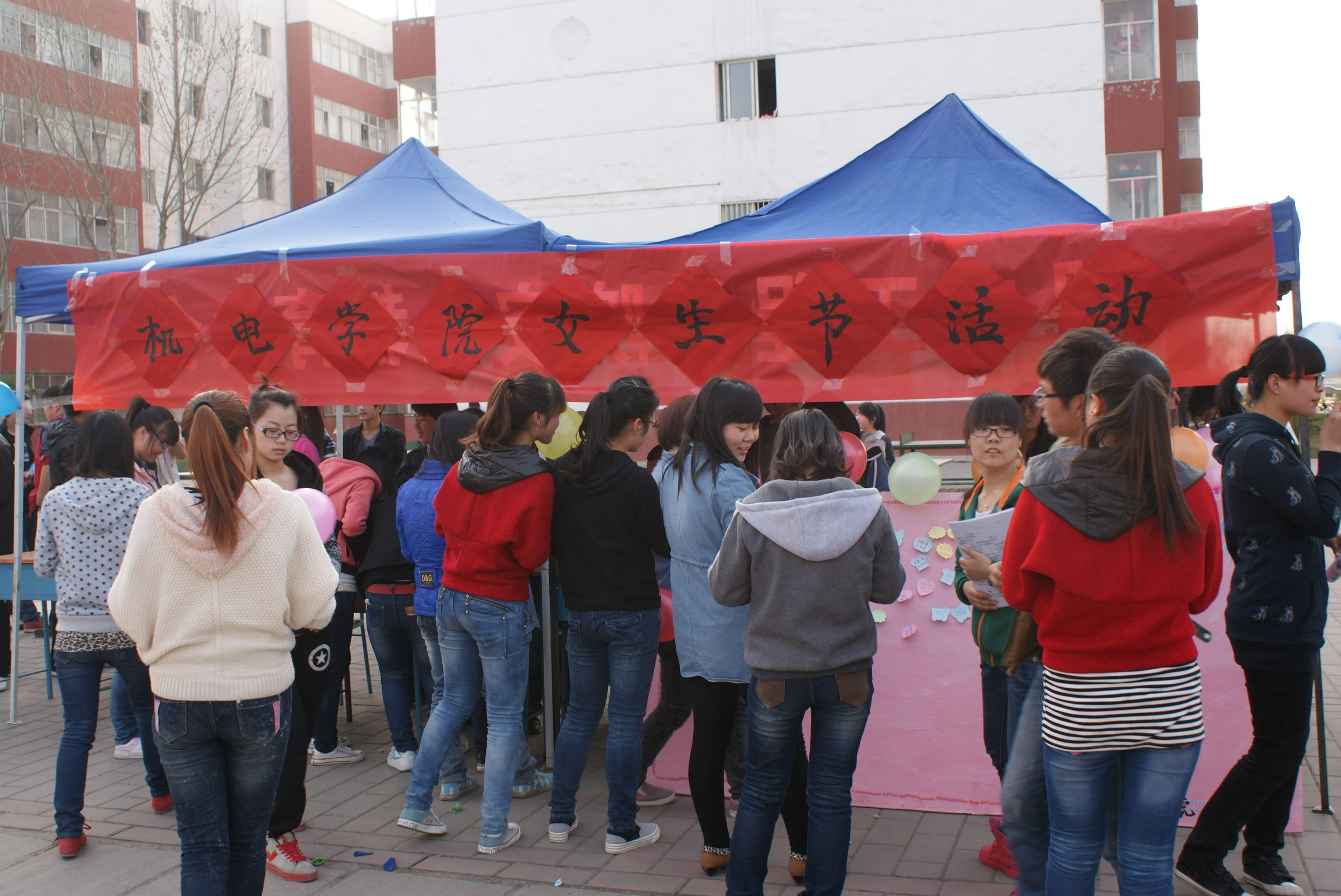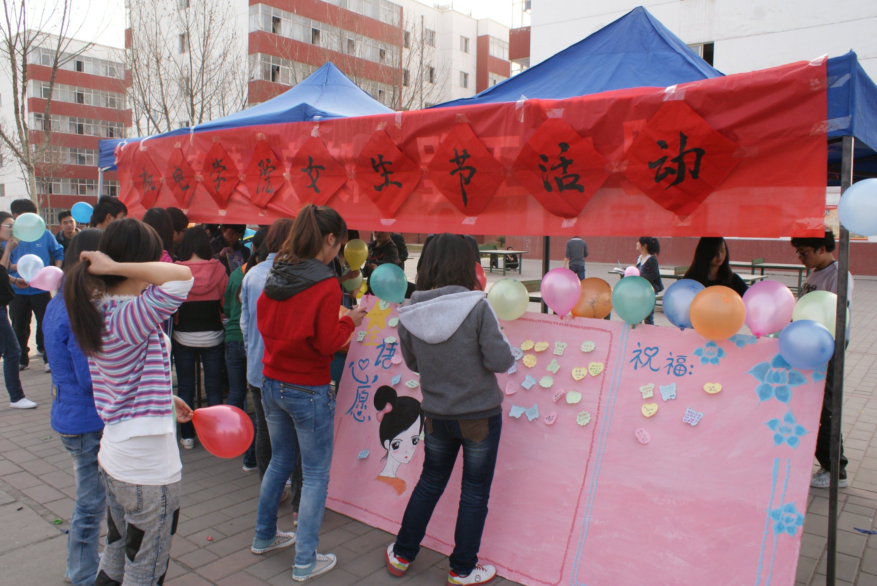 为了丰富我校大学生的校园文化生活,增强学生之间相互交流和互相帮助的观念,我院学生会于3月7日下午在北校区2公寓东侧举办了女生节活动。此次活动由机电工程学院主办,学生会活动部承办,活动形式新颖有趣,引来了众多同学的参与。活动中每位参加活动的女生只要通过智力答题均可以获取一份小礼物。女生们在心愿板上贴上自己的愿望和期许,许多男生也前来在祝福板上写下关爱的话语,活动现场热闹非凡。本次活动分发挥学生的主体性,让每一个男女学生都参与其中,为男生女生提供一个相互交流的平台,更让每一个女生在女生节这个属于自己的节日里拥有一个美好的回忆。