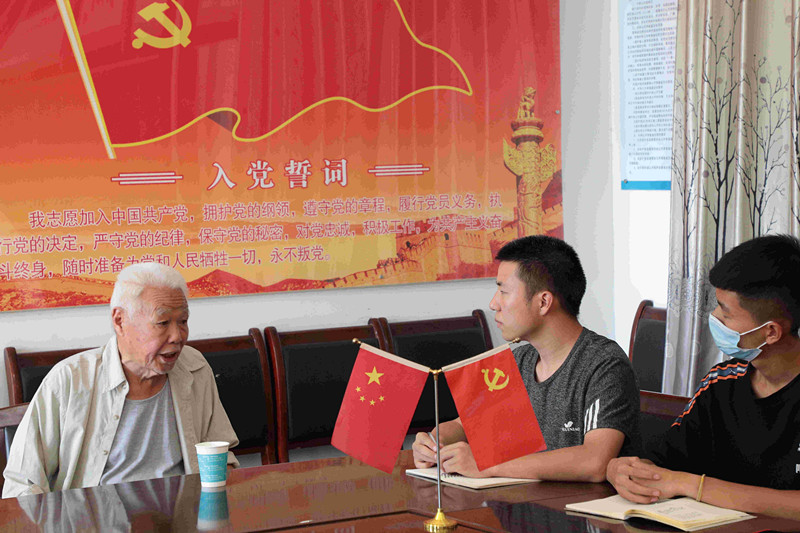 2020年9月3日下午,四位老师和大学生志愿者们大家带着大米、食用油和面粉等慰问物资一同走进了抗美援朝老兵吴世熊的家。吴爷爷出生于1933年,现年已87岁高龄,1951年吴爷爷踏上了前往异国他乡的征程,参加了抗美援朝战争。当追忆往昔峥嵘岁月,留给老人的是一生的刻骨铭心的回忆。身为志愿军战士时前赴后继,征战沙场时的场景依然历历在目,其中,令他至今依然无法忘记的是老班长对自己的帮助与保护,但在一次突围中,老班长在高炮的怒吼中埋骨他乡,他却活到现在,说到激动处,老人眼圈泛红,一阵哽咽。最后,老人还用他那沙哑的嗓音给大家唱着抗美援朝进行曲:“雄纠纠气昂昂跨过鸭绿江,保和平为祖国就是保家乡,中国好儿女齐心团结进,抗美援朝打败美帝野心狼……”听着老人歌声,大家仿佛也回到了那段峥嵘岁月。那段充满硝烟但又铿锵有力的时光,是无悔的青春,是英雄的写照,一切都值得人们永远铭记。