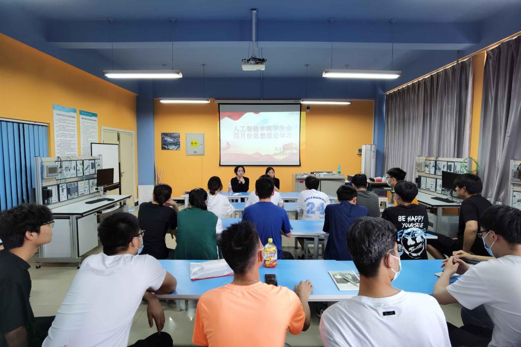 为学习宣传贯彻习近平总书记致全国青联十三届全委会和全国学联第二十七次代表大会的贺信和党中央致词精神,人工智能学院团总支组织全体学生会成员于2022年4月26日晚在8号教学楼209教室开展学生会2022年春季学生会全体工作人员培训暨四月份思想政治理论学习。本次会议有人工智能学院学生党支部书记刘沛静老师,人工智能学院团总支书记贾媛媛老师以及全体学生会干部参加本次会议。