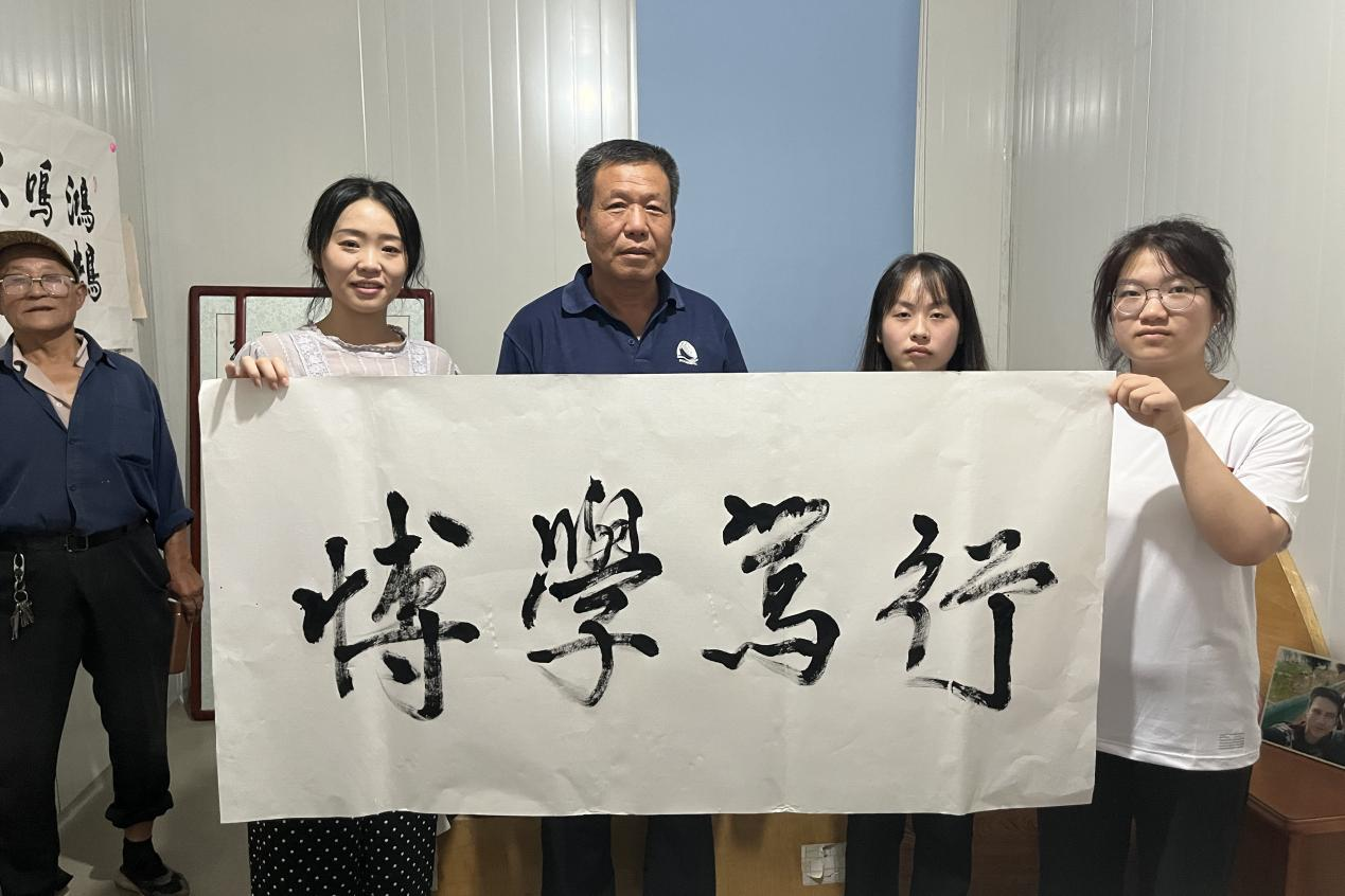 7月28日,实践队来到了第六位老人的家里,采访最后一位双拥家族的老父亲王力民。他为我们讲述这几十年来儿孙纷纷投身保卫祖国,儿子在高中毕业直接报考军校,1996年考进大学当兵26年,服役于9357空军第一师,多年来一直投身到一线工作中。老父亲提及到儿子三年都没回过家了,第一年因为部队上的事不能回家探亲,到了第二年儿子到石家庄飞行学院帮教准备回家的时候石家庄突然封城,到了今年因为老家西安疫情突然爆发不能回家。孙子在大专毕业后选择了入伍,现服役于93841部队,今年回家告诉爷爷这次回部队就准备转士官,前些日子刚走不久。这位双拥家族的老父亲说的最多的就是叮嘱我们青年们一定要好好学习,以后保家卫国。通过老人家对儿子和孙子的经历讲述我们学习到当代青年就应该用知识来伪装自己,随时随地投身到祖国的建设当中去。活动最终,这位老人还为大家亲笔书法题字“博学笃行”以此鼓励青年朋友们。