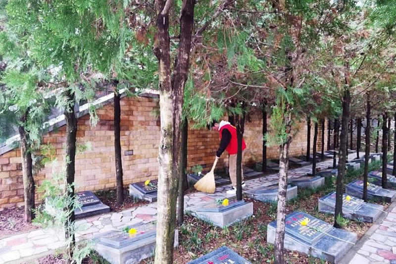 青年代表们纷纷感叹于为了祖国牺牲自己的一个个年轻的生命,主动争抢拿起笤帚、抹布,打扫起陵园的墓碑。他们轻轻地拭去烈士墓碑上的浮尘,扫去碑前的尘土,摆放好墓碑上的鲜花,让革命精神永放光芒。