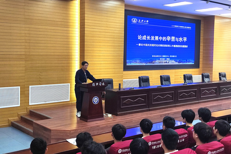 为深入开展学习习近平新时代中国特色社会主义思想主题教育以及全面深入学习贯彻党的二十大精神,6月6日,由党委新利体育官方网站部主办,人工智能学院、汽车工程学院共同承办的“论成长发展中的辛苦与水平”系列资助育人实践活动讲座在我校教四报告厅成功举办。本次讲座特邀陕西省教育关工委研究中心常务副主任贺宏斌担任主讲,学校各院部辅导员老师以及各分院受资助学生代表500余人参与本次讲座。