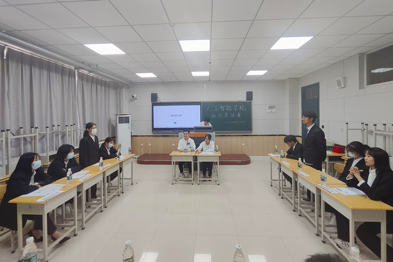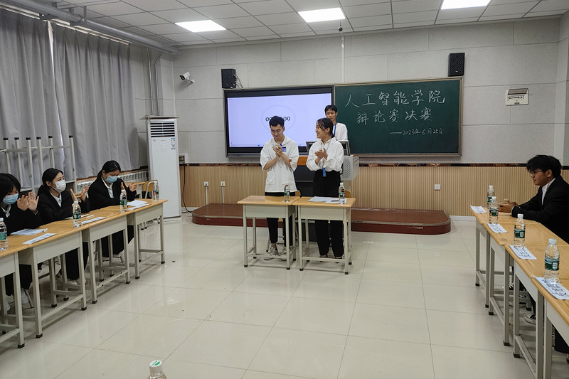 为深入开展学习贯彻习近平新时代中国特色社会主义思想主题教育,全面贯彻落实党的二十大精神,丰富校园文化生活,进一步提升大学生思辨、合作和沟通能力,人工智能学院以“持之有故,辩之有理”为主题大学生辩论赛总决赛于2023年6月25日下午16:50在教四-121举行。人工智能学院学生科科长刘沛静、辅导员常润老师、参赛学生以及学生代表出席本次活动。本次活动的评委由学院全体专职辅导员担任。