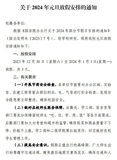 关于2024年元旦放假安排的通知