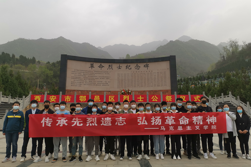 为缅怀革命先烈的丰功伟绩,寄托对革命先烈的无限哀思,弘扬革命先烈的崇高精神,引导教师和青年学子学习革命先烈英勇事迹,继承先烈遗志,凝聚奋进力量, 3月30日下午,18新利苹果客户端马克思主义学院组织思政课教师和学生共计30人,前往西安市鄠邑区金南山烈士陵园开展“传承先烈遗志 弘扬革命精神”清明祭扫活动,祭扫活动由马克思主义学院办公室主任皮睿主持。