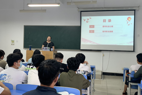 2022年5月25日下午16:40在北校区3-110教室,思修教研室开展了本学期公开课示范教学活动。刘娟老师示范讲授“思想道德与法治—第五章第三节职业道德”教学内容,教研室专兼职教师全程观摩。