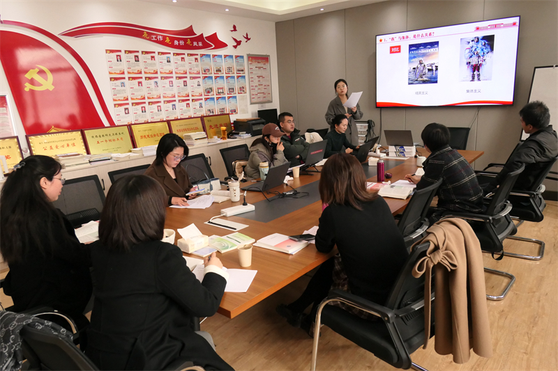2月14日下午,马院特邀长安大学马克思主义学院沈秀芳、李婷老师来校为5位思政大练兵参赛教师作品进行打磨,会议由马院院长吴娟主持,教研室主任张红斌、李航参会。