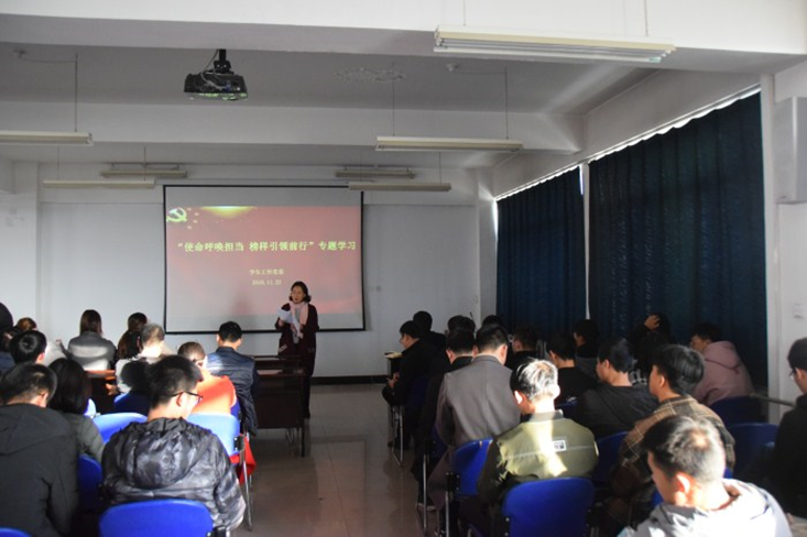 2018年11月22日下午,新利体育官方网站党委学团思政党支部组织全体党员开展了“使命呼唤担当 榜样引领前行”专题学习,会议由新利体育官方网站党委书记沈惠主持。