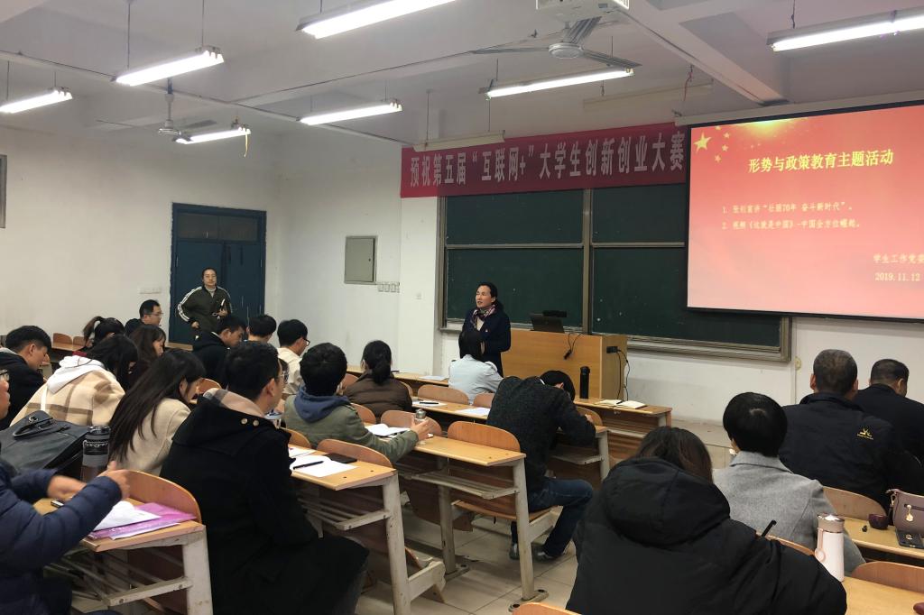 2019年11月12日下午,新利体育官方网站党委全体师生党员在教3-106教室开展了形势与政策教育主题活动。活动由新利体育官方网站党委书记沈惠主持。