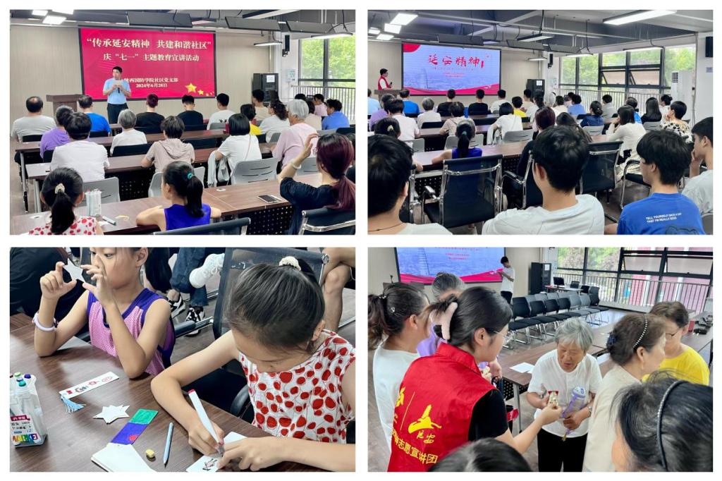 为庆祝中国共产党成立103周年,6月28日下午,我校“薪火相传”志愿服务队走进国防社区开展“传承延安精神 共建和谐社区”庆七一主题教学教育宣讲活动。