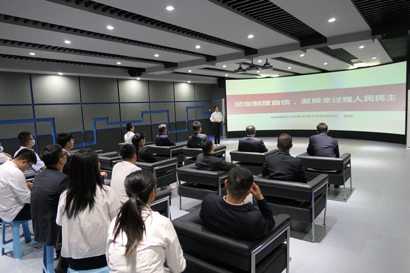在本次宣讲活动中,胡可主要围绕“坚持制度自信 发展全过程人民民主”和“高质量发展‘高’在哪儿”两个主题,面向宣讲对象进行了理论阐释和案例解析,在“坚持制度自信 发展全过程人民民主”主题中,宣讲以“豆选”案例引入,从全过程人民民主是全体人民的民主、是人民全过程参与的民主、是“最广泛”“最真实”“最管用”的民主等方面进行了重点讲解,生动讲述了我国全过程人民民主的具体实践,展现了中国特色社会主义民主制度的优越性;在“高质量发展‘高’在哪儿”主题中,宣讲从“一粒米中的硬科技”切入,生动展示了我国农业发展的现状;以“高铁与绿皮火车你选择哪一个”为话题,与现场同学进行互动,引出欠发达地区如何因地制宜走出适合本地区实际的发展之路,进而阐释高质量发展强调的是质量,而非速度,强调的是发展而非增长,回答高质量发展“高”在哪儿。