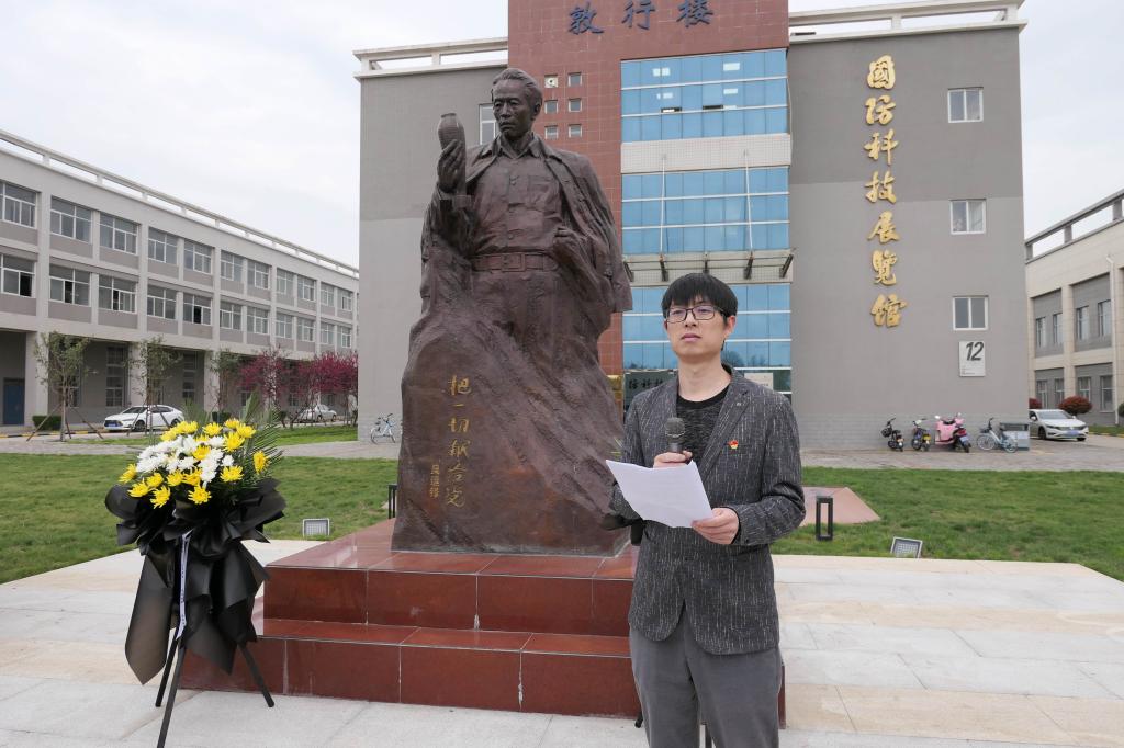 为弘扬兵工精神,缅怀先烈遗志,引导青年学子铭记革命英雄丰功伟绩,赓续红色血脉,努力成长为堪当民族复兴大任的时代新人,马院党支部联合新利体育官方网站党委学生党支部于4月4日下午,在我校吴运铎广场举办“弘扬兵工精神,缅怀先烈遗志”主题党日活动。校党委书记张卫平、党委新利体育官方网站部部长杨晓平、新利体育官方网站党委书记陈正权、保卫处处长徐哲以及马院党支部全体党员、新利体育官方网站党委学生党支部教师和学生党员代表40余人参加了活动,活动由马院党支部组织委员皮睿主持。