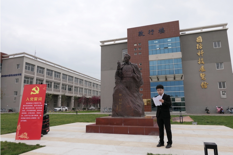 随后,四位学生党员代表朗诵了《把一切献给党》“入党”章节节选,张卫平同志与杨晓平同志一同向吴运铎同志雕像敬献花篮,寄托对革命先烈的无限哀思,表达了对革命先烈的缅怀与“把一切献给党”精神的敬意。最后,由陈正权同志领誓,全体党员齐立运铎同志像前,重温入党誓词。活动结束后,大家一同前往国防展馆红色实践教学基地参观学习。