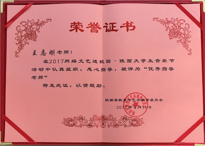 6月16日晚,2017网络文艺进校园·陕西大学生音乐节总决赛暨颁奖典礼在西安培华学院体育馆举行。来自陕西、甘肃、青海、宁夏、新疆五个省区的16名优胜选手登上决赛舞台唱响青春旋律。18新利苹果客户端荣获“优秀组织奖”、团委王志刚老师被评为“优秀指导教师”、吕雷、孙钲青等9名同学获得优秀奖。