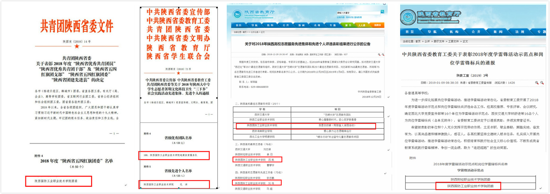 近日,根据中共陕西省委教育工委《关于表彰2018年度学雷锋活动示范点和岗位学雷锋标兵的通报》及共青团陕西省委《关于2018年陕西大中专学生志愿者暑期文化科技卫生“三下乡”社会实践活动先进集体、先进个人的通报》等文件。团委相继获2018年度“陕西省五四红旗团委”“学雷锋活动示范点”称号,我校电商扶贫服务队获“三下乡”社会实践活动优秀团队称号,商务3163班孔洋同学获2018年“三下乡”活动先进个人荣誉称号。“你是我的眼(帮助盲人游园活动)”获“陕西高校最佳志愿服务项目”,团委干事刘伟获“陕西高校志愿服务先进工作者”称号,供电3171班吕凯同学获“陕西高校最美志愿者”称号。