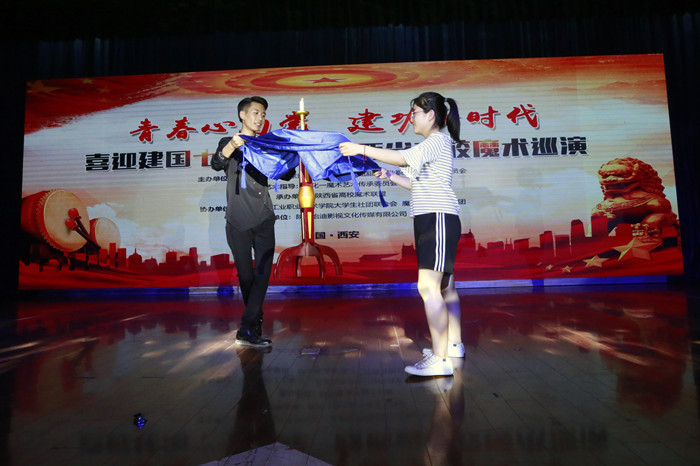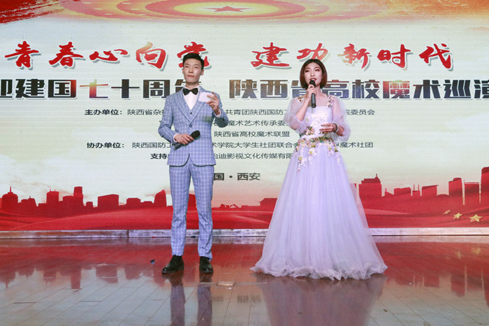 5月22日下午17时整,由陕西省杂技艺术家协会、我校团委联合主办,周化一魔术艺术传承委员会参与指导,陕西省高校魔术联盟承办,我校大学生社团联合会、魔术协会联合协办的“青春心向党 建功新时代 喜迎建国70周年”陕西省高校魔术进校园活动,在我校大学生活动中心隆重举行。我校副院长杨聪,陕西省文联杂技艺术家协会秘书长李绍忠,国家一级演员、陕西省杂技艺术家协会副主席兼“国家级非遗”周化一魔术传承艺术委员会会长司凡,陕西省杂技艺术家协会理事牛建新,团委书记易楠,各分院党总支书记、团总支书记以及1500余名学生观看了本次演出。