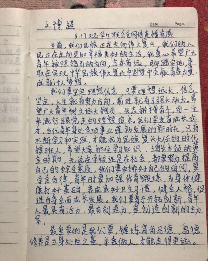 时值暑假,我校青年学生尚未返校,分散在各地,有的同学还在暑期实践中,但在各团总支的积极号召下,及时观看纷纷响应,并向团组织发来直播活动的观后感言。