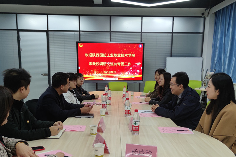10月20日上午,校团委书记张钊等4人赴陕西工业职业技术学院调研交流共青团工作。陕西工业职业技术学院团委书记赵双军等相关负责人热情接待了我校来访人员。
