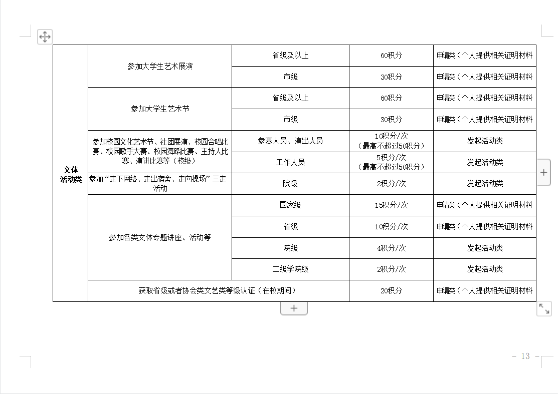 第十三条 学生申请第二课堂积分,分为申请类和发起活动类。申请类应提供相应证明材料,主要包括:参加各级各类竞赛(活动)的证明及获奖证书、各类荣誉证书、职业资格证书、 社会实践证明、发表论文所载刊物等材料的原件或复印件。所有证明材料须真实有效,不得弄虚作假,一经发现伪造证明材 料者,将取消该生第二课堂积分、学分申请资格,并依据学院相关规定严肃处理。
